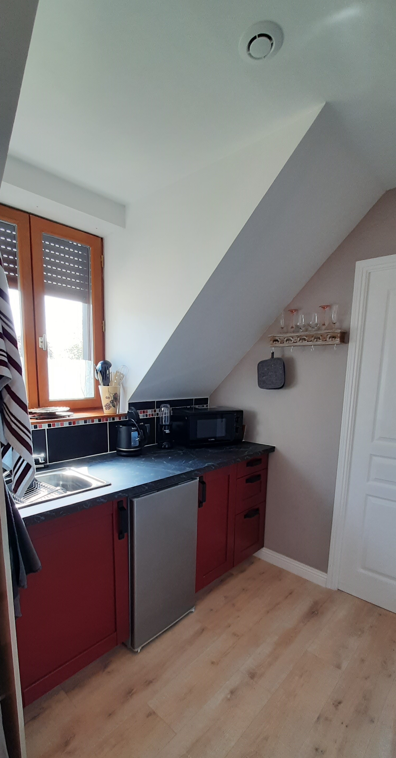 - Au premier étage se trouvent également la kitchenette 6m2 et la salle d’eau 6m2.
