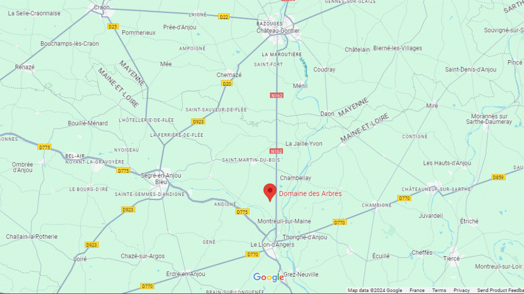 Nous sommes situés à 20 minutes au nord d’Angers dans le village de Montreuil-sur-Maine, entre les villes du Lion D’Angers et de Château Gontier.